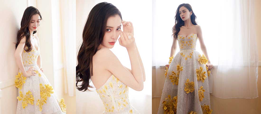 ▲女星Angelababy(杨颖)最新造型曝光。(图/翻摄自微博) 女星Angelababy(杨颖)凭借亮丽外型走红,最新的活动造型中,Angelababy换上一套“繁花平口纱裙