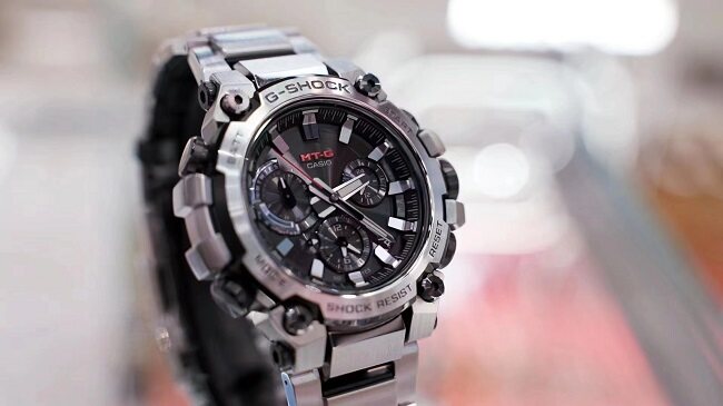 在结构上,MTG-B3000追加配色款采用双重核心防护构造结构,进一步升级了原本的碳纤核心防护构造,表头由金属和碳纤维两种材质构成,从而实现对机芯更强劲有效的防护。而且,全新的“一键式”更换表带功能也十分方便,无需工具亦可轻松更换表带。